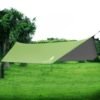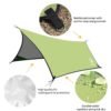 - SILVER WITH UV PROTECTION – This Sun Tarp will make sure that you wouldn’t get burned on a hot sunny day. PU 5000mm coated Polyester allows for sun protection. It can serve as a shelter for your hammock, tent, clothes, pet or portable kitchen against both rain and sun.