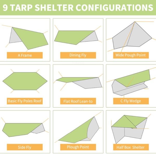 - DESIGNED FOR MULTI USES – This tent tarp/ rain fly is designed for multiple outdoor activities. It Is an ideal option for hammock, camping, backpacking, hiking, beach, kitchen shelter, tents and weddings, family day or festivals, etc.